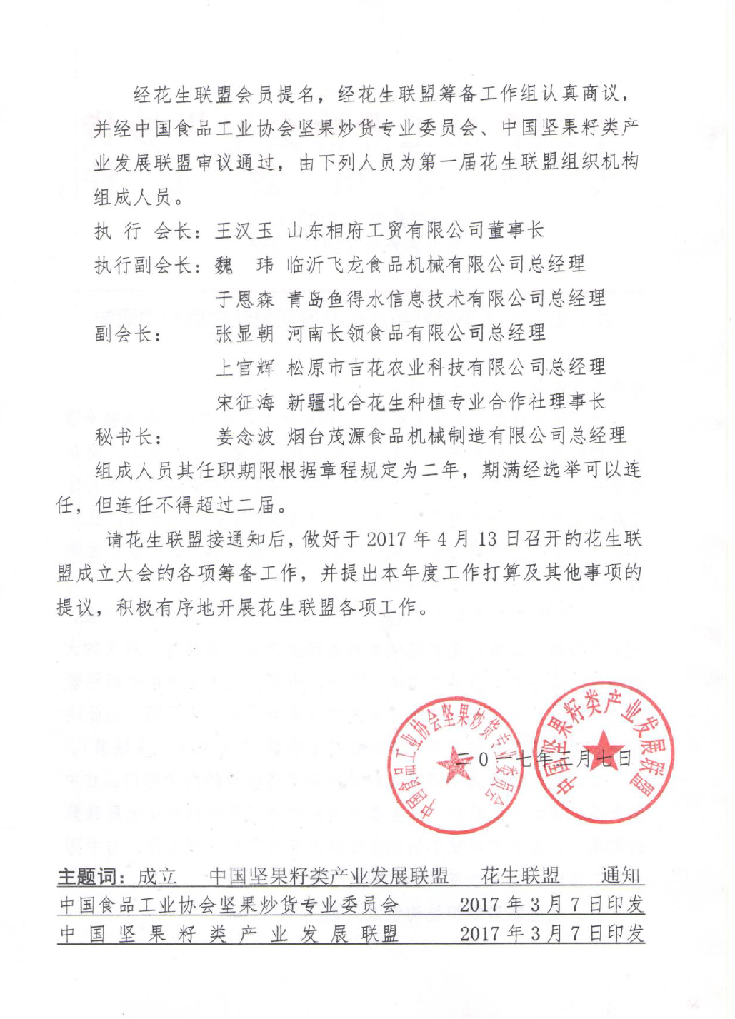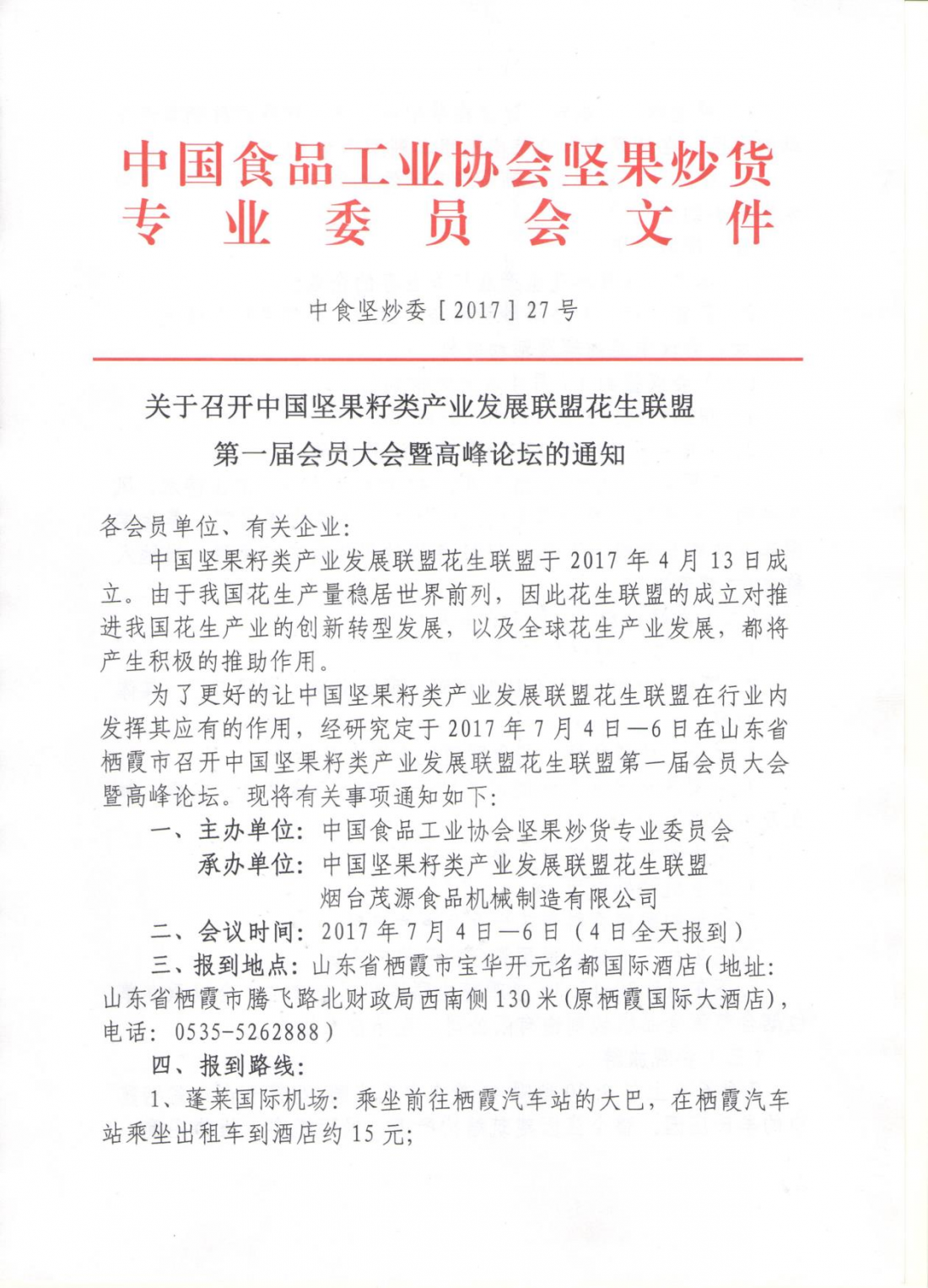 2017年7月4日—6日,由中國(guó)食品工業(yè)協(xié)會(huì)堅(jiān)果炒貨委員會(huì)主辦,中國(guó)堅(jiān)果籽類產(chǎn)業(yè)發(fā)展聯(lián)盟花生聯(lián)盟和煙臺(tái)茂源食品機(jī)械制造有限公司共同承辦的中國(guó)堅(jiān)果籽類產(chǎn)業(yè)發(fā)展聯(lián)盟花生聯(lián)盟頭一屆會(huì)員大會(huì)暨高峰論壇在山東省棲霞市召開(kāi)。