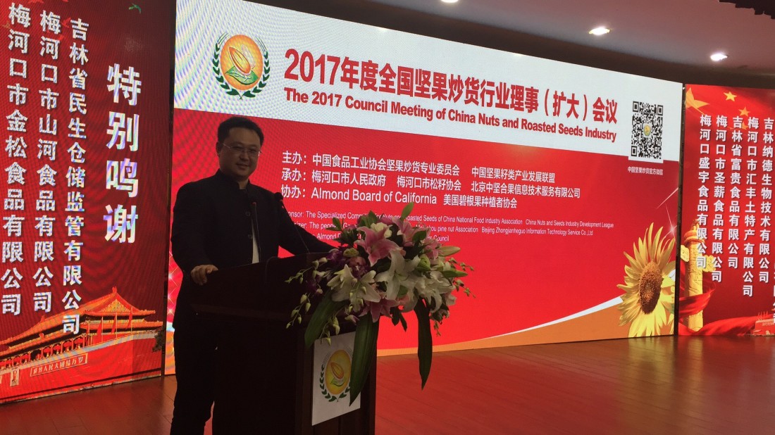 由中國食品工業協會堅果炒貨專業委員會主辦的“2017年度全國堅果炒貨行業理事會(擴大)會議”,于2017年10月23日—25日在吉林梅河口市召開。出席此次會議的代表有:協會執行會長、副會長、全體理事單位;梅河口市政府、廣西龍州縣政府、云南臨滄縣政府有關部門領導以及吉林省有關市縣的領導;出席的有關部門還有國家食藥監總局三司、吉林省食品安全質量檢驗檢測所,以及美國、俄羅斯、越南、巴基斯坦等國家堅果協會、企業代表,共計500余人參加了會議。